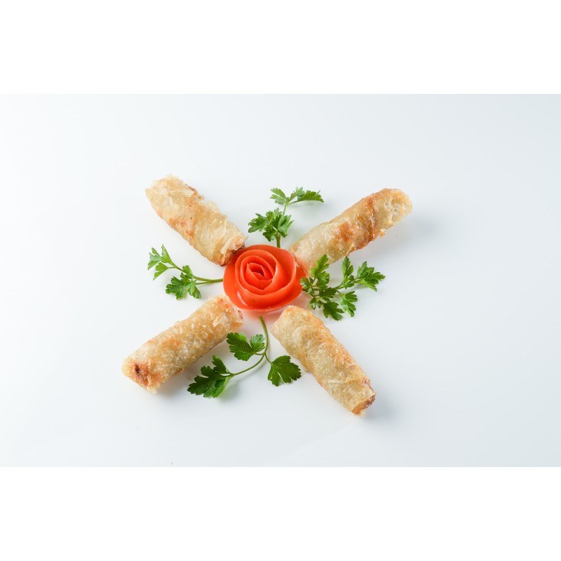 Une farce composée de viande de porc hachée , carottes, oignons, vermicelles transparentes de soja, champignons noirs, oeufs, poivre, sel, sucre, ail, gingembre, enroulée dans une galette de riz fine et frite dans de l'huile de tournesol.